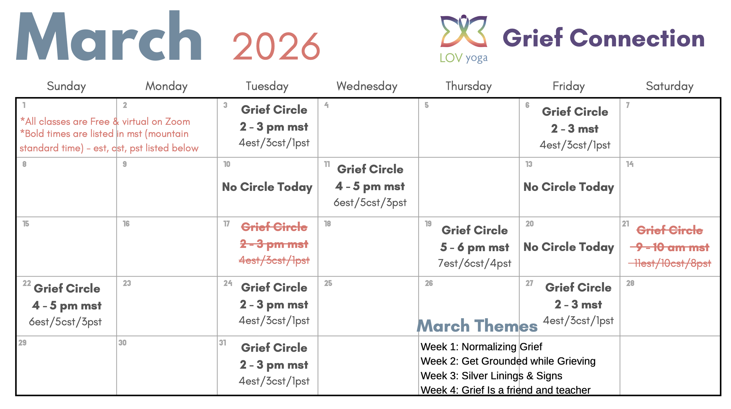 Email tara@lov.yoga to sign-up. All circles will be on zoom. Same link to simplify, so when you sign-up, you will be good to go for the month. Stop-in sometime soon :)